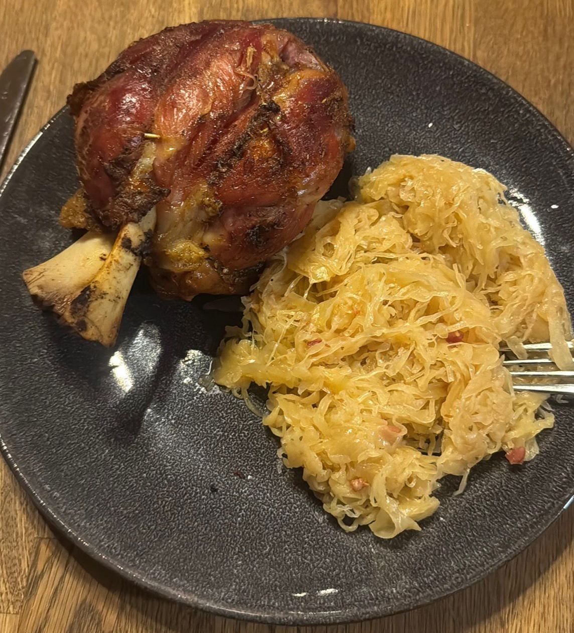 Manchmal entstehen die besten Ideen, wenn ein paar Freunde die Köpfe zusammenstecken. So auch die Idee, in gemütlicher Runde knusprig gegrillte Schweinebeine mit vergorenem Weißkraut zu verzehren.