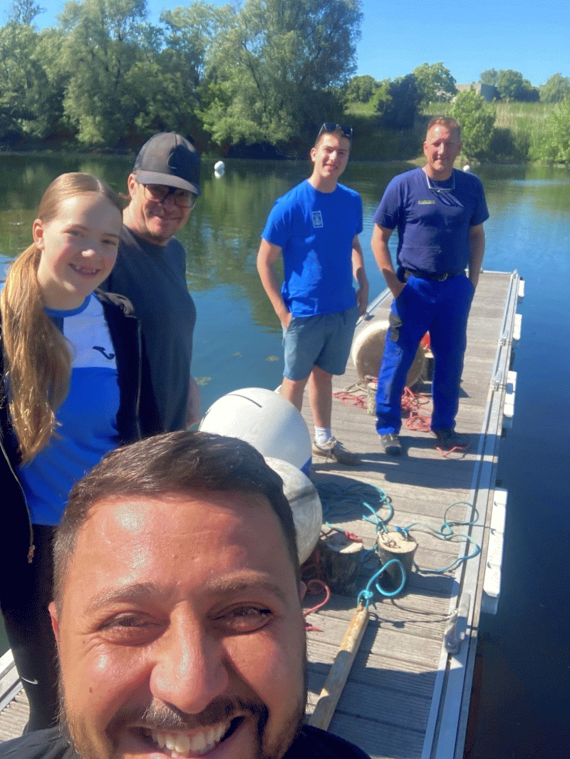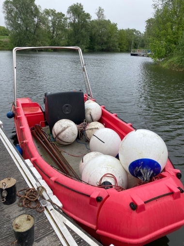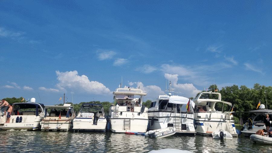 Bei tropischen Temperaturen trafen sich 18 Bootsfahrer mit ihren rausgeputzten Yachten, um den professionellen Umgang mit ihren angeketteten Unterwasserbootfesthaltegeräten zu trainieren. Nicht nur Greenhorns auch die Altvorderen hatten ihre liebe Mühe, wolingfrei die Ketten in den Altrhein zu versenken. Nach erfolgreichem Training wurde natürlich der ein oder andere Durstlöscher seiner Zweckbindung zugeführt.