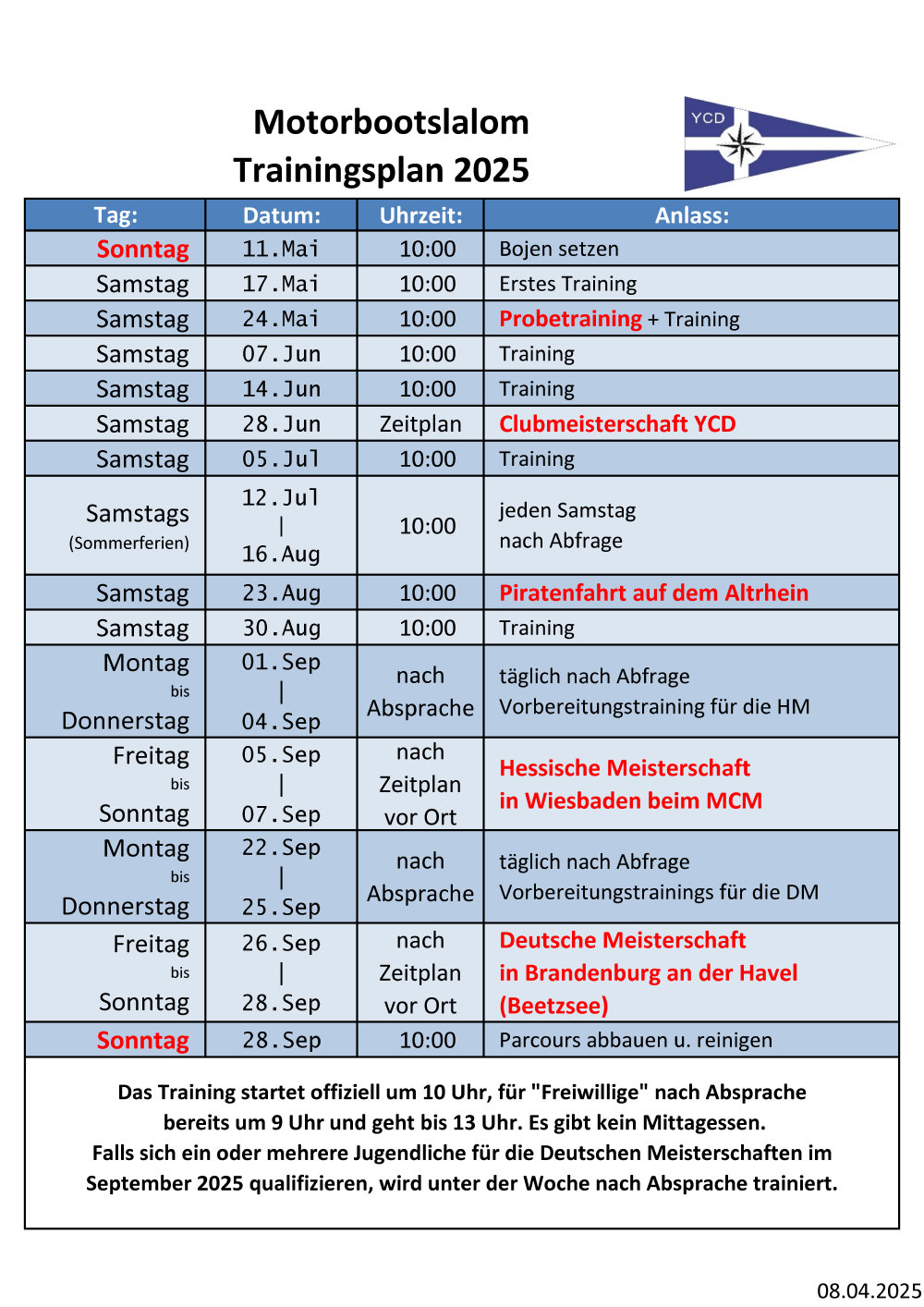 Termine Arbeitseinsätze und WE-Hafenmeister